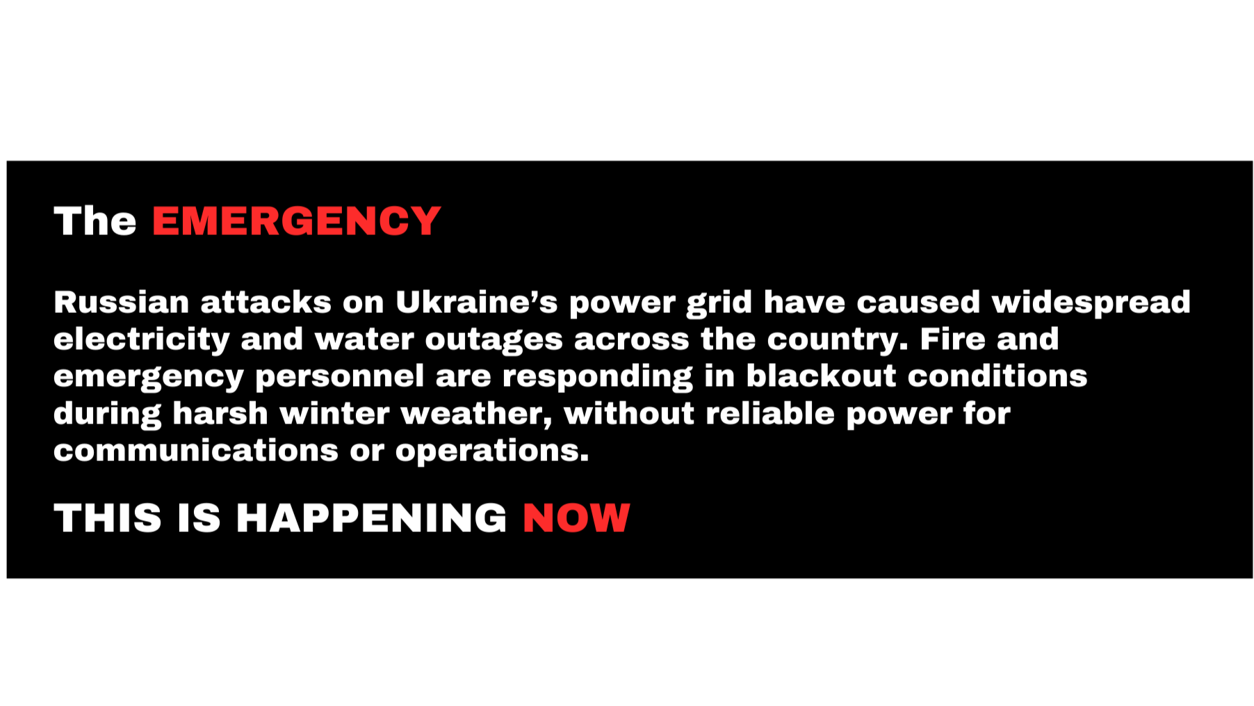 Donate now to keep Ukraine’s frontline responders operational when the grid fails.